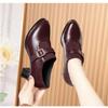 Soft leather thick heel single shoes soft sole non-slip medium heel leather shoes low top