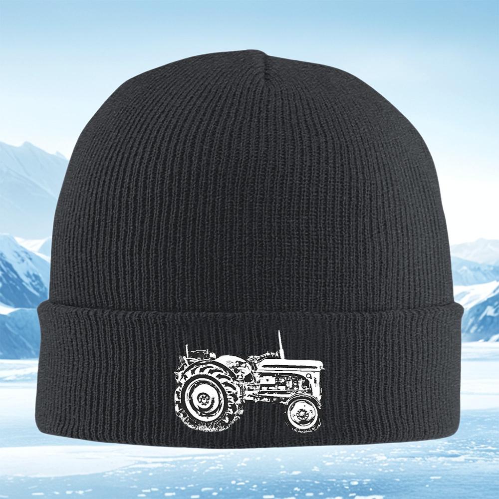 Tractor side profile wheels black background Men Women Unisex Knitted Hat Beanie Pullover Cap Winter Thermal Warm Christmas Outd