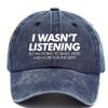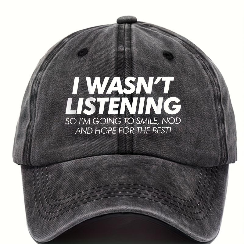 I Wasnt Listening Smile Nod Funny Baseball Cap Distressed Denim Casual Adjustable Adult Hat