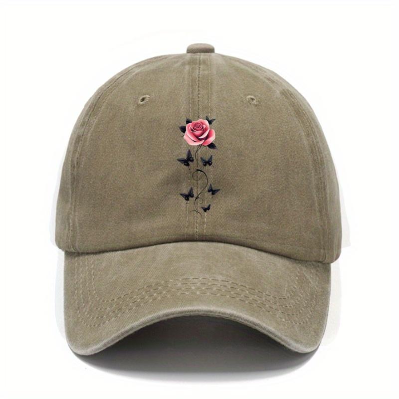 Rose And Butterflies Embroidered Baseball Cap Unisex Washed Outdoor Casual Adjustable Dad Hat