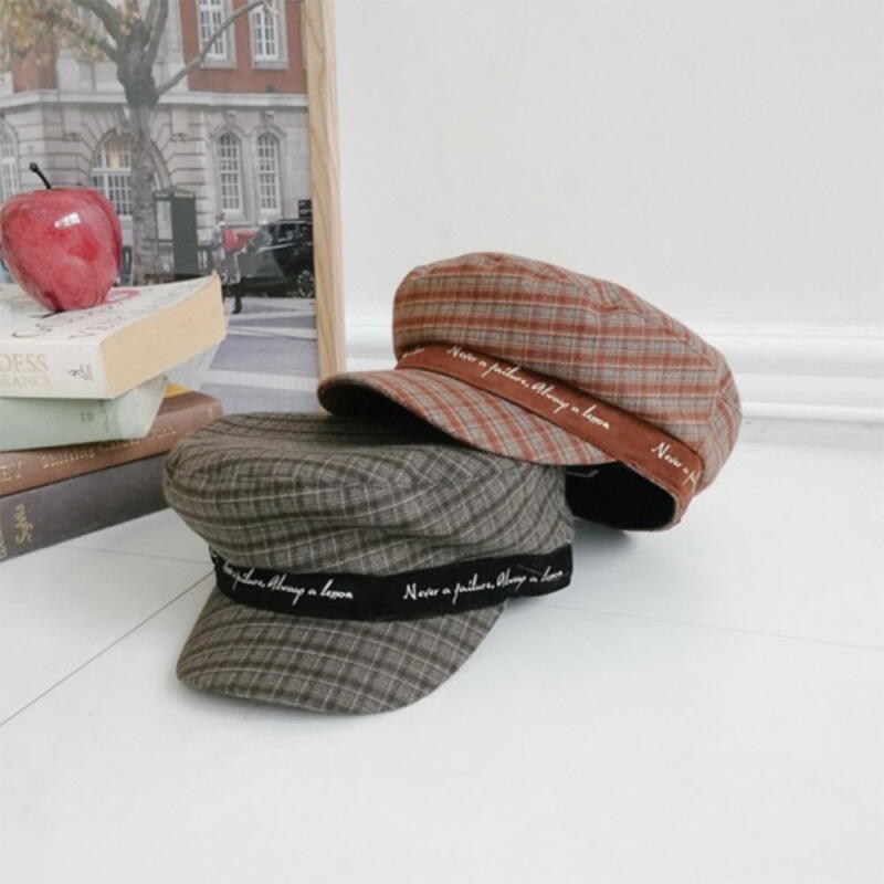Women's Check Sailor's Cap Autumn Embroidered Color Block Hat
