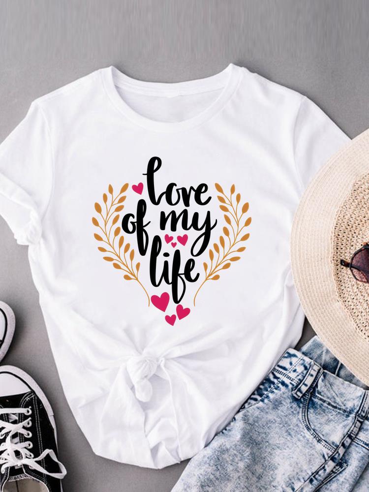(Asian Size) letter love trend T-shirts O-neck Casual Clothing Fashion Female Women's Top Short Sleeve T shirt Printed Graphic Tee