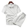 Stylish and Comfortable: This men's sports suit features a button decoration, short sleeves, and cropped shorts for a casual yet fashionable look. Perfect for summer wear and suitable for all body types.