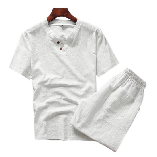 This men's suit is designed with a relaxed and casual fit, featuring a button accents, short sleeves, and cropped shorts. The loose and comfortable design ensures no restrictions on body size, making it suitable for everyone. The simple yet stylish short sleeves and cropped shorts make this suit a must-have for summer travel and outdoor activities. Our men's suit is not only perfect for sports but also an excellent choice for various occasions such as school, work, travel, and vacation. Its casual yet chic look makes it a versatile addition to your wardrobe that can be dressed up or down depending on the event. Upgrade your wardrobe with our summer men's short-sleeve suit – a fashionable and comfortable choice that will keep you looking stylish all season long.