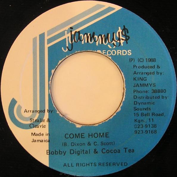 7inch Record BOBBY DIGITAL DIXON COCOA TEA Come Home NONE Jammys Records 1988 Jamaica Reggae Ska Dub Used