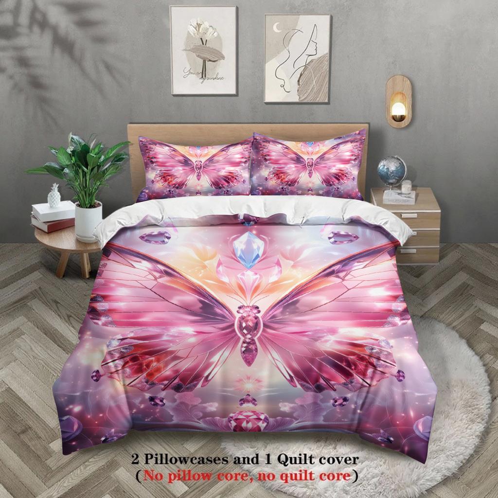 Butterfly Print Bedding Set Pink Purple Crystal Butterfly Design