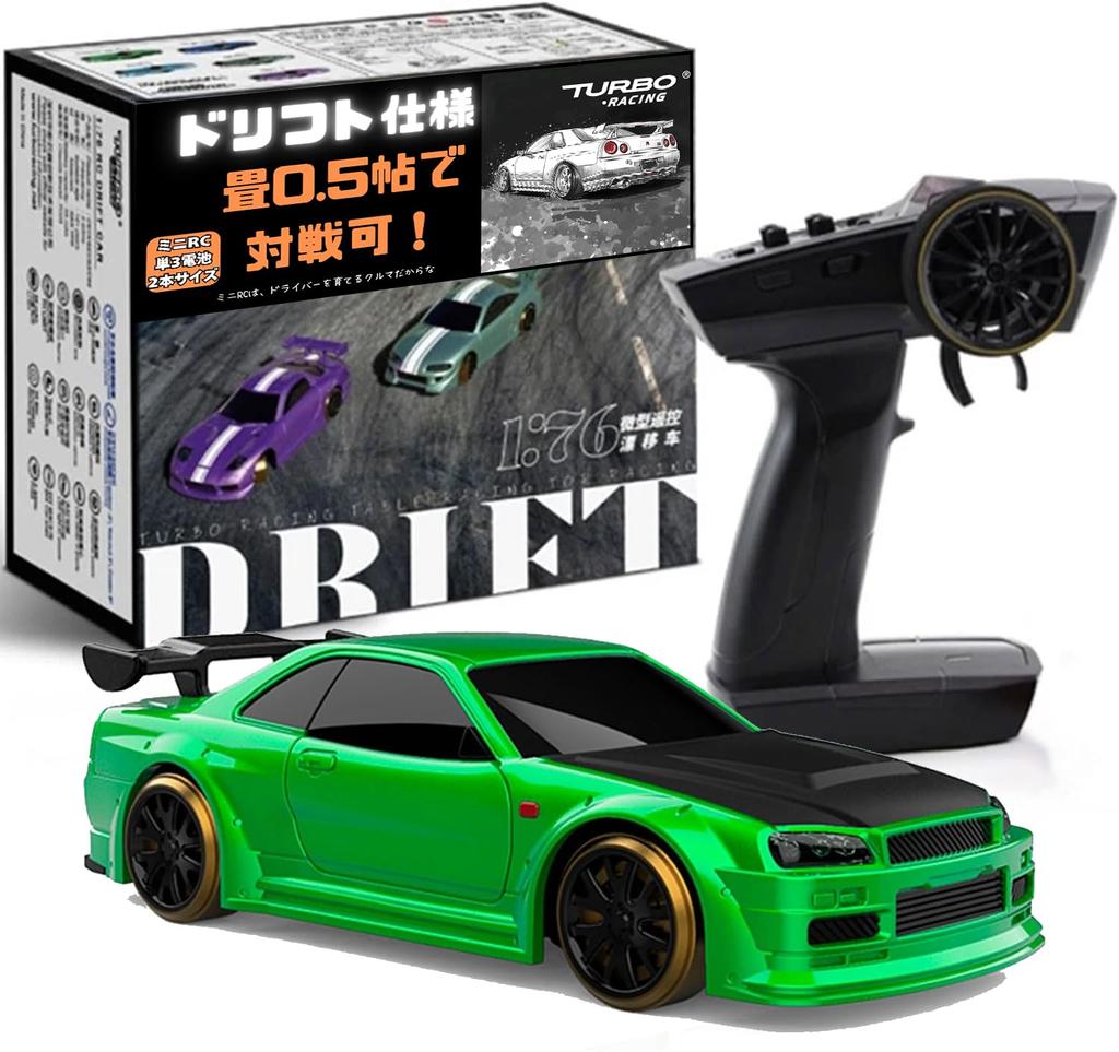 Turbo Racing C64 Drift Car, 1:76 Scale RC Car, Green, Japanese Instruction Manual, Full Set, Technical Standards Approved, Ministry of Economy, Trade