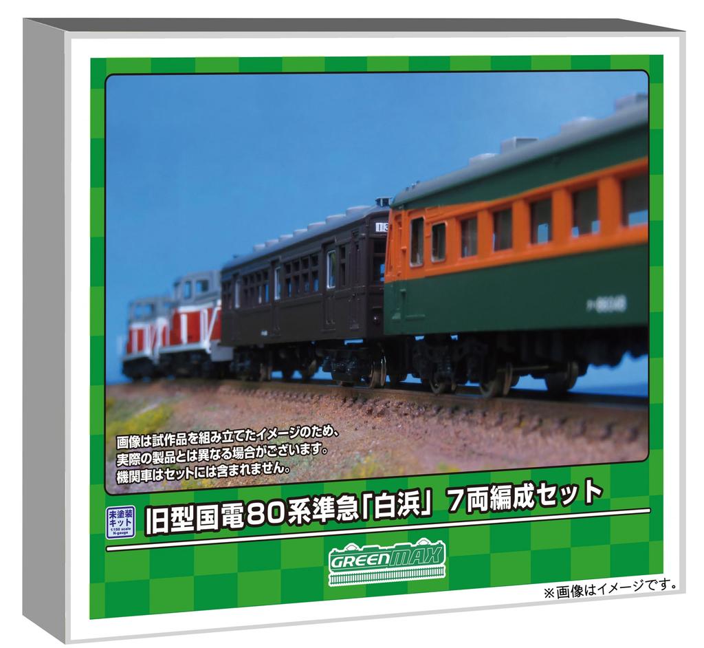 Greenmax N Gauge Old National Railway 80 Series Economy 968 Model Train Semi-Express "Shirahama" 7-Car Set, Unpainted, Kit,
