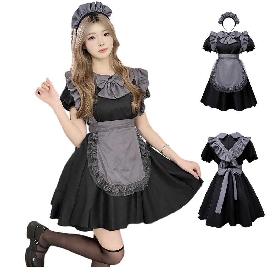 Set Includes: Headband, Dress, Apron, Ribbon; Color: Gray; Sizes: S, M, L, XL, 2XL; S: Shoulders: 32.5cm, Bust: 86cm, Waist: 67cm, Sleeve Length: 22.5cm; M: Shoulders: 33.5cm, Bust: 90cm, Waist: 70cm, Sleeve Length: 24cm; L: Shoulders: 34cm, Bust: 94cm, Waist: 75cm, Sleeve Length: 25cm; XL: Shoulders: 35.5cm, Bust: 98cm, Waist: 78cm, Sleeve Length: 25.5cm; 2XL: Shoulders: 37.5cm, Bust: 103cm, Waist: 89cm, Sleeve Length: 26cm. Measurements are taken flat. There may be slight variations in measurements. Thank you for your understanding. [Material] Polyester