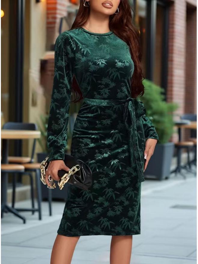 2025 Autumn/Winter Long-Sleeved Bodycon Midi Dress - Elegant Socialite Style