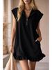 2026 Spring/Summer Women's Sleeveless Zipper V-Neck Ruffle A-Line Dress with Double Pockets