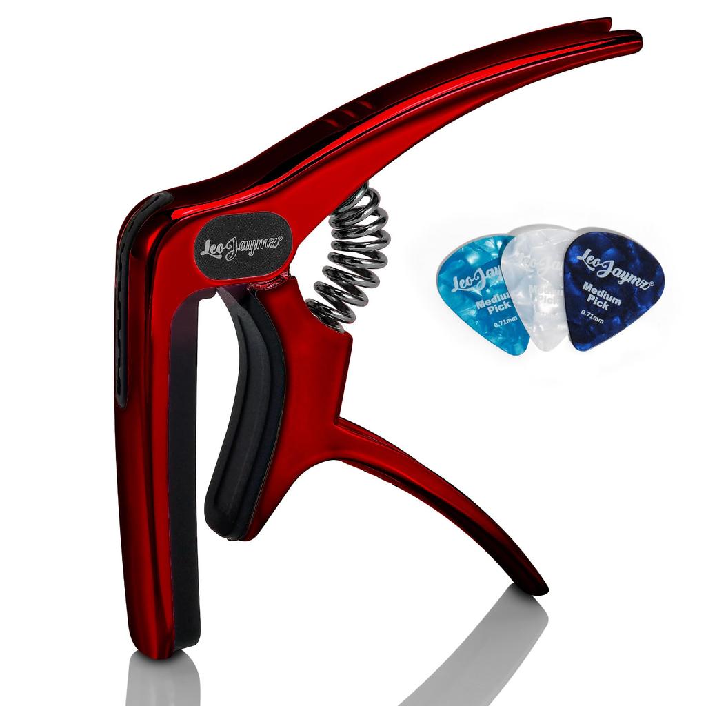 PREMIUM CRAFTSMANSHIP: Leo Jaymz capos are compatible with acoustic and electric guitars, as well as ukuleles, bass guitars, banjos, and mandolins.