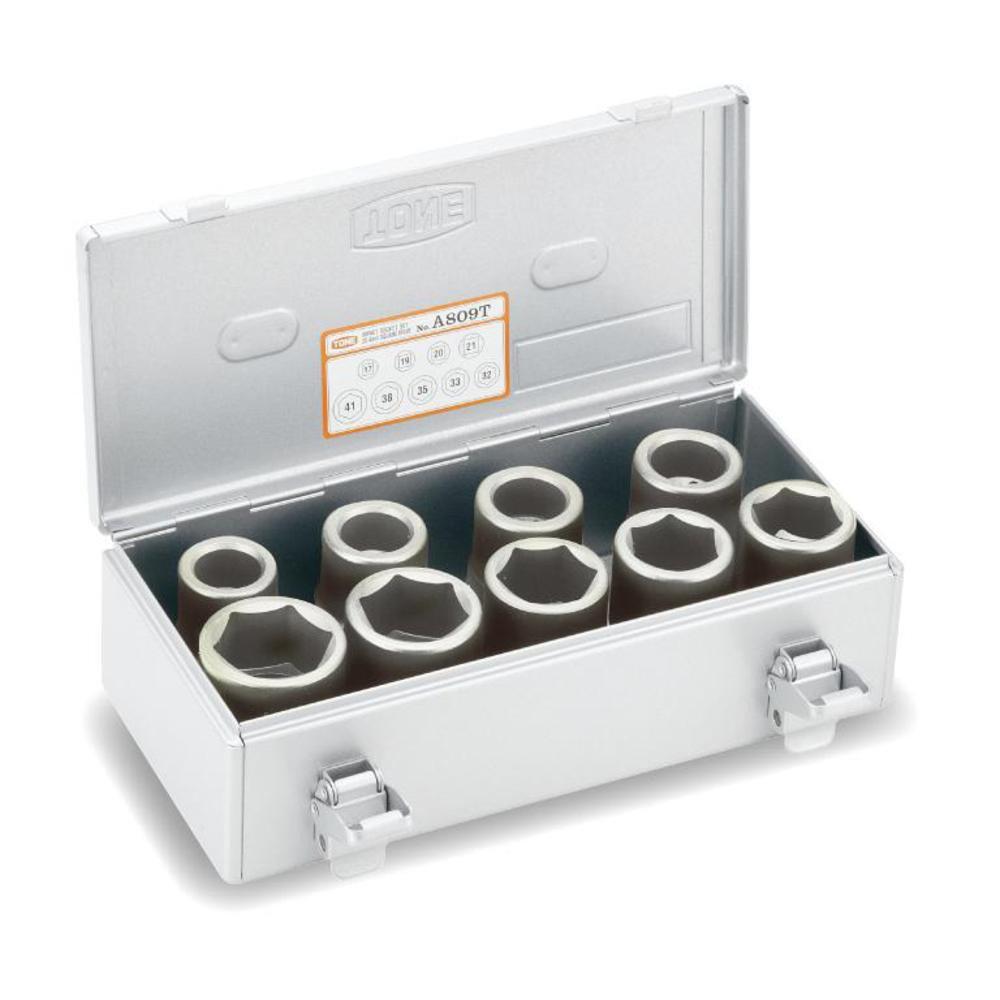 TONE Impact Socket Set Wheel Includes 9 Pieces (for Nuts), A809T, 25.4mm (1") Drive, Silver,