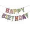 Πανό Happy Birthday με Γκλίτερ σε Χρώματα Μακαρόν – Προσαρμόσιμη Διακόσμηση Πάρτι