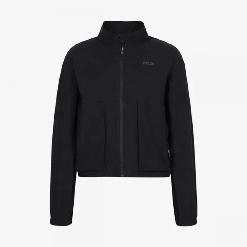 The FILA Stretch Cut Windbreaker FS2JKG1251FBLK is a women's sports jacket made with stretch materials that provide a comfortable fit. The cut design emphasizes a stylish silhouette, while the lightweight windproof fabric makes it suitable for various sports activities like running and hiking, as well as everyday outdoor activities. It features a zipper front closure, ribbed cuffs, and hem to minimize air inflow, and an adjustable drawstring hood that protects the face from wind and rain.