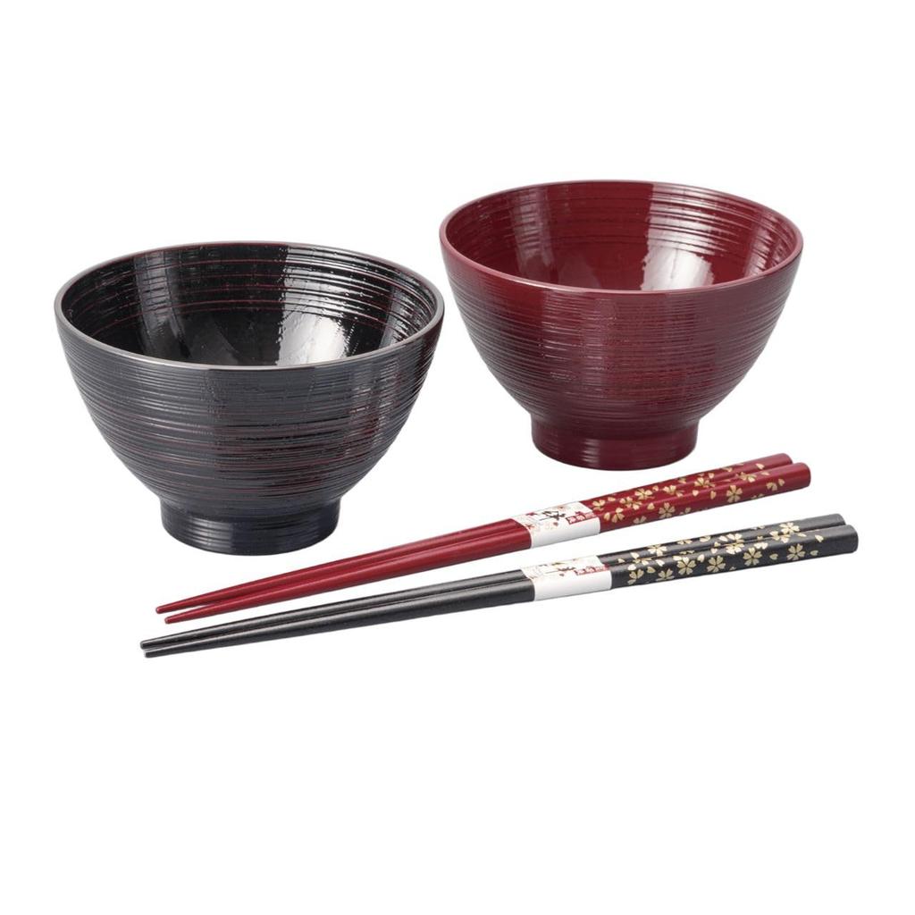Yamaya Lacquerware Bowl and Chopsticks Set with Gift Box (Microwave-Safe Soup Bowl, Akebono/Negoro)