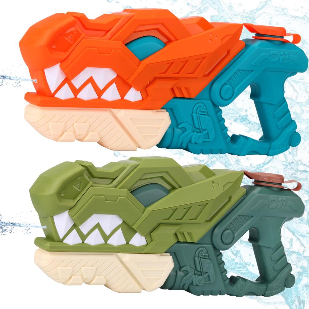 Yangtomo Water Guns, Set of 2, Powerful, Kids' Water Toy with a 10m Projectile Distance, Pressurized, Large Capacity (600ml), Dinosaur Water Gun, Wate