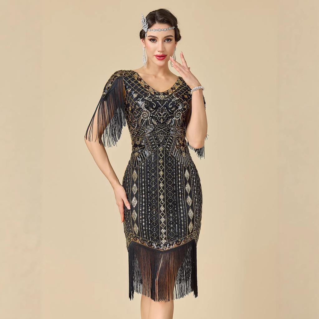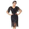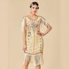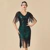 Women's Plus Size 1920s Gatsby Flapper Dress, Sequin Beaded Short Sleeve Fringe Evening Gown For Party & Pr