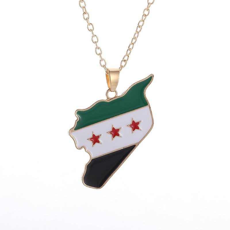Fashionable Syrian map flag necklace, retro alloy oil-drip sweater chain pendant, hip-hop jewelry gift for women and men