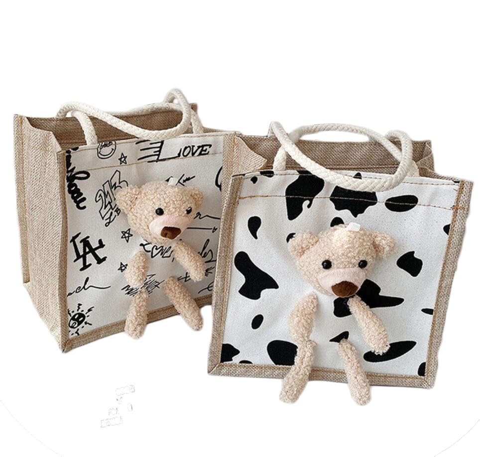 Stylish canvas tote bag for women, perfect as a gift or interior accessory. Large capacity, eco-friendly, bear-themed, casual handbag for travel