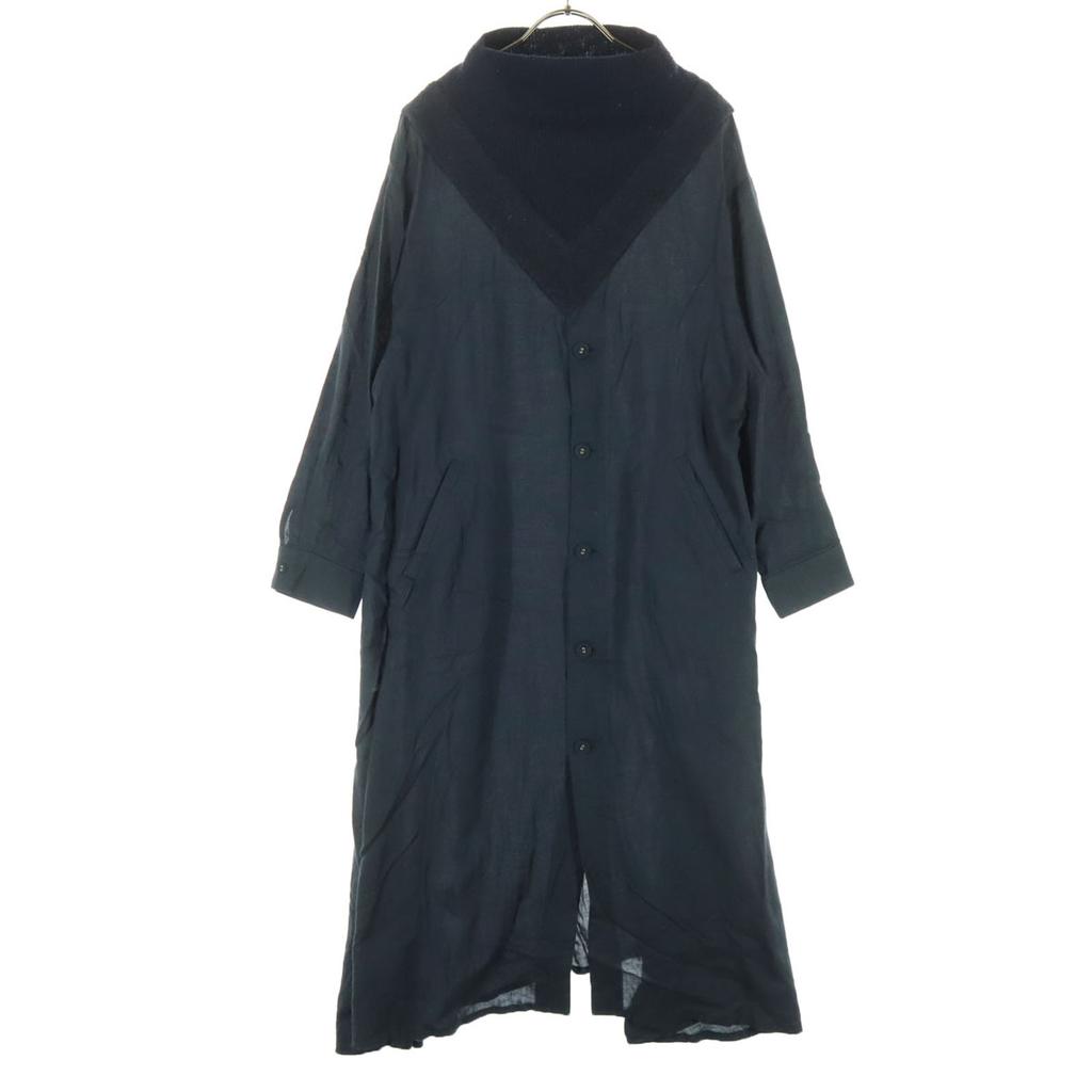 bedsidedrama made in Japan Long sleeve Shirt dress Navy switching knit Women Used