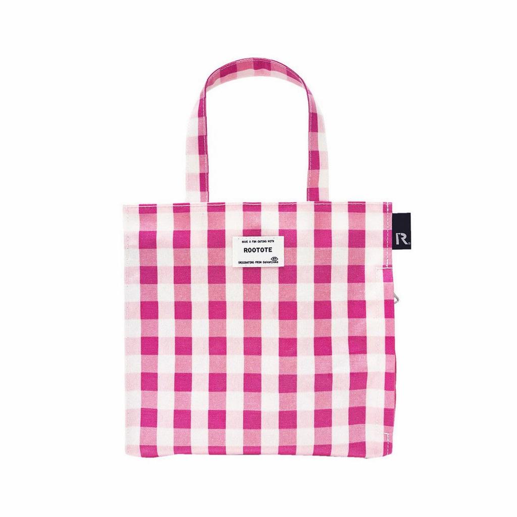 Rootote Small Tote Bag, Gingham Check, Square Laminated, Q 1029 (02 CheckPink)