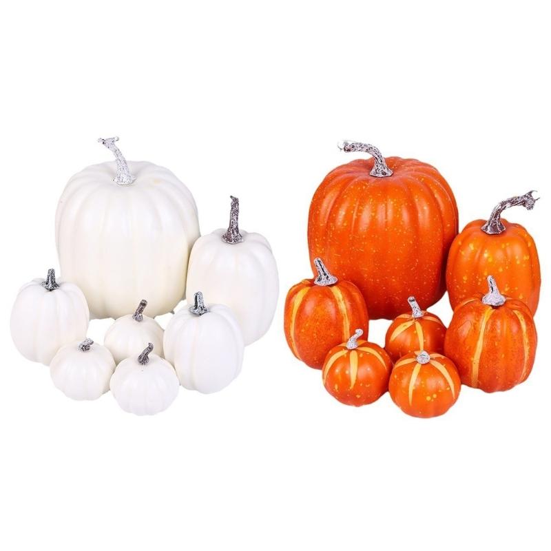 7pieces Halloween Artificial Pumpkin Thanksgiving Decorative Pumpkins Halloween Carnivals Foam Pumpkin Decors Kids Gift