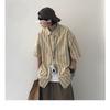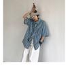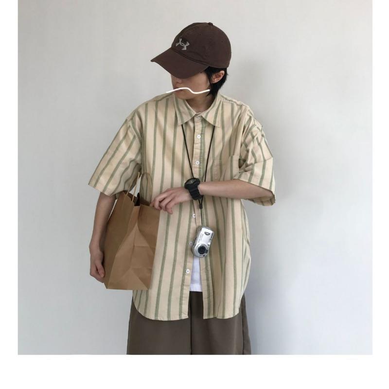 Men's Casual Loose Striped Shirt Oversized Half Sleeve Button Down Cotton Blend Top