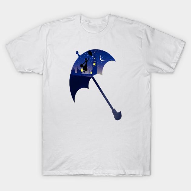 Men Black Print T-shirt Mary Poppins Umbrella No-Cut Transfer Paper Print Cotton Tshirt