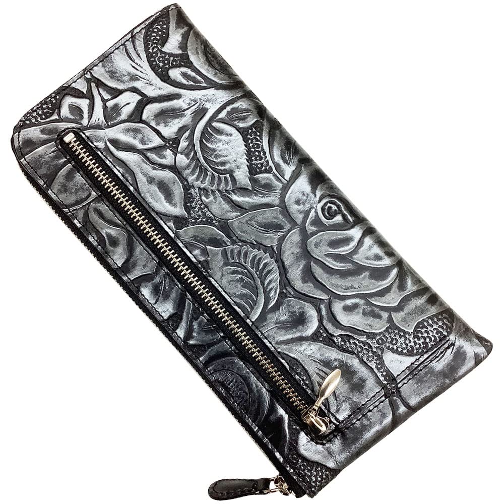 HARUBE Kyoto Naniwaya Slim L-Zip Long Wallet, Cowhide Leather, Rose Embossed, Women's, #83-157 [Metallic Rose] (Black)