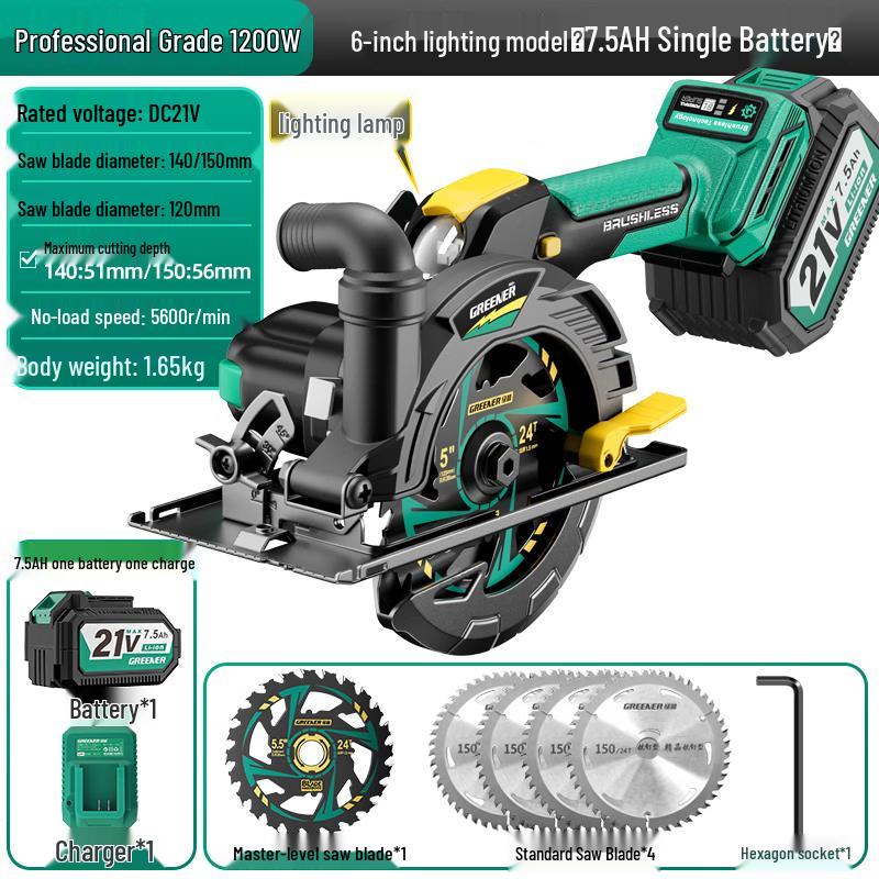 GREENER 21V Cordless Brushless Lithium Circular Saw CN plug (adapter included)
