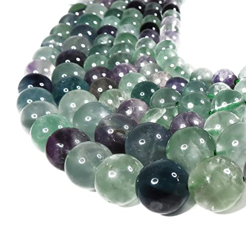 SmileStone Fluorite Mixed Fluorite Beads, 10mm, Sold as a Strand (Approx. 38cm), Natural Stone, Power Stone Beads (10mm)