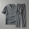 Ανδρικά Ρούχα Μεγάλο Μέγεθος Σπίτι Σύζυγος Καλοκαιρινό Κοστούμι Λινό T-shirt Μοντέρνο Ανδρικό Σετ Κινεζικό Στυλ 8XL 9XL συν Δύο Τεμάχια