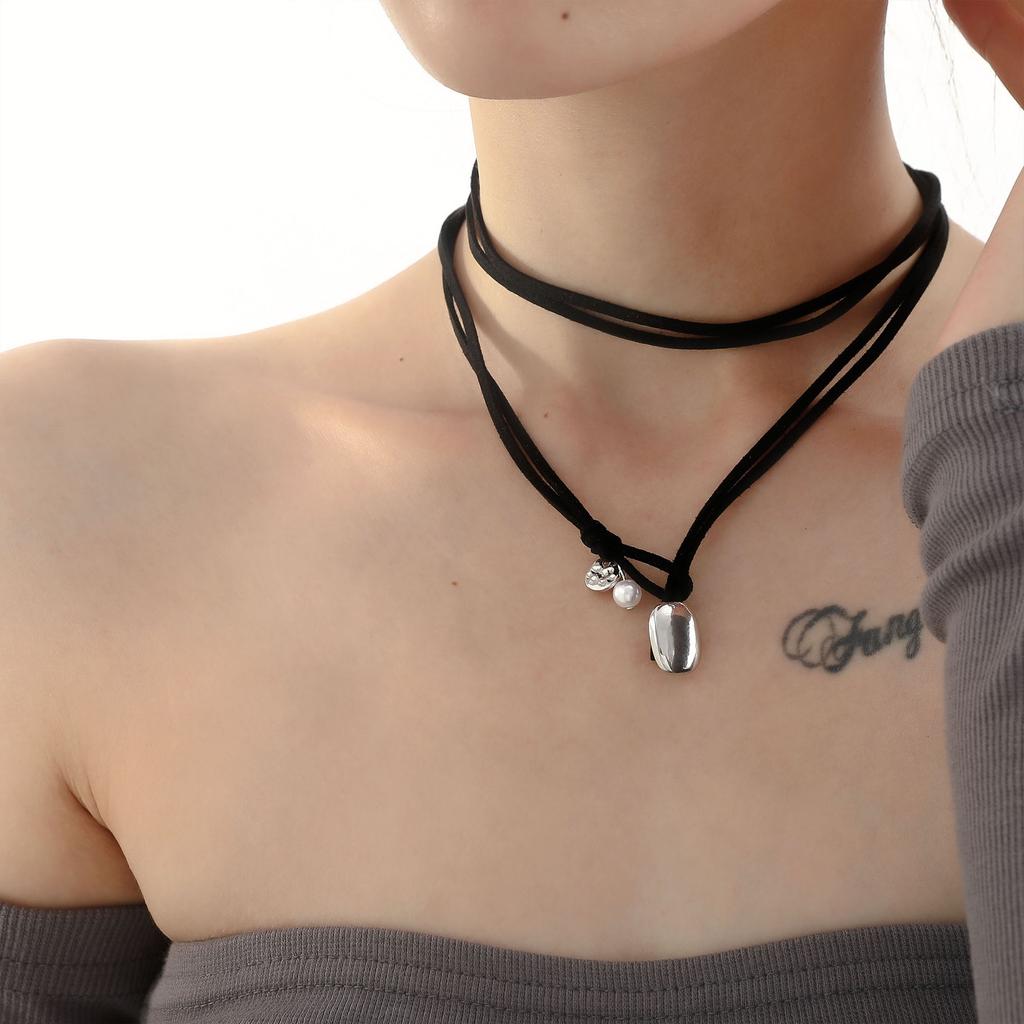 Fashion Necklace Double-Layer Wrapped Neck Chain, Retro Simple Choker Collarbone Chain Necklace