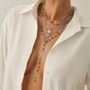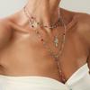 Light Luxury Colored Crystal Chain Stacked Long Necklace, Diamond-Encrusted Cross Pendant Collarbone Necklace