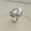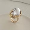 Baroque Special-Shaped Imitation Pearl Ring Set, Fashionable Style Metal Pleated Flower Ring For Women