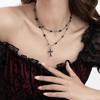 Sweet And Cool Short Cross Star Collarbone Choker Dark Goth Rhinestone Tassel Necklace Women