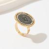 Retro Old Geometric Knock Pattern Disc Ring, Cold Wind Metal Pleated Flower Ring