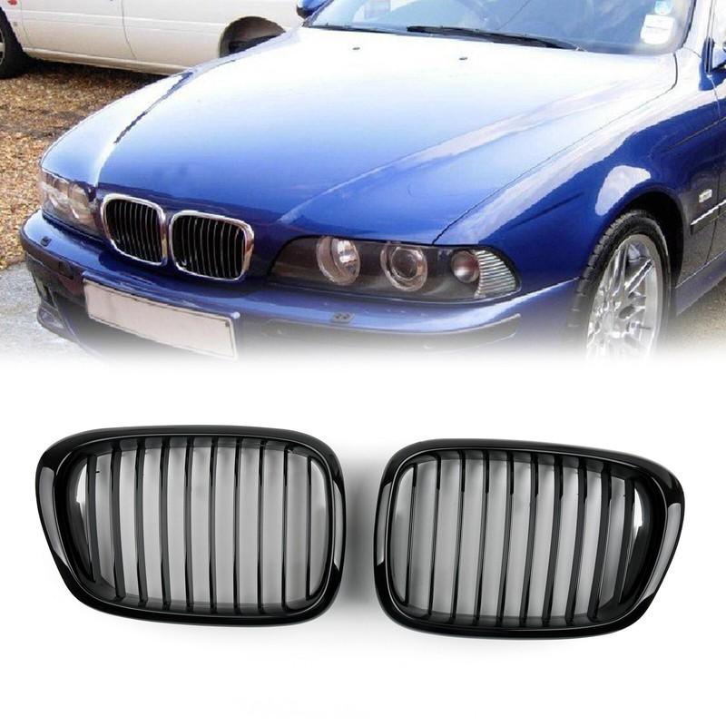 Front Fence Grill Grille ABS Gloss Black Mesh For BMW 5-Series 2001 2002 2003 2004