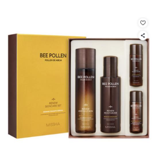 This nourishing 2-step skincare set features Bee Pollen Renew Ampoule Skin and Moisturizer to deliver deep hydration and revitalizing care. Enriched with bee pollen extract, it helps soothe dry, tired skin while improving moisture balance and overall skin vitality. The ampoule-type toner provides intensive hydration, while the moisturizer strengthens and smooths the skin barrier. The set also includes travel-size free gifts, making it ideal for gifting or complete daily care.