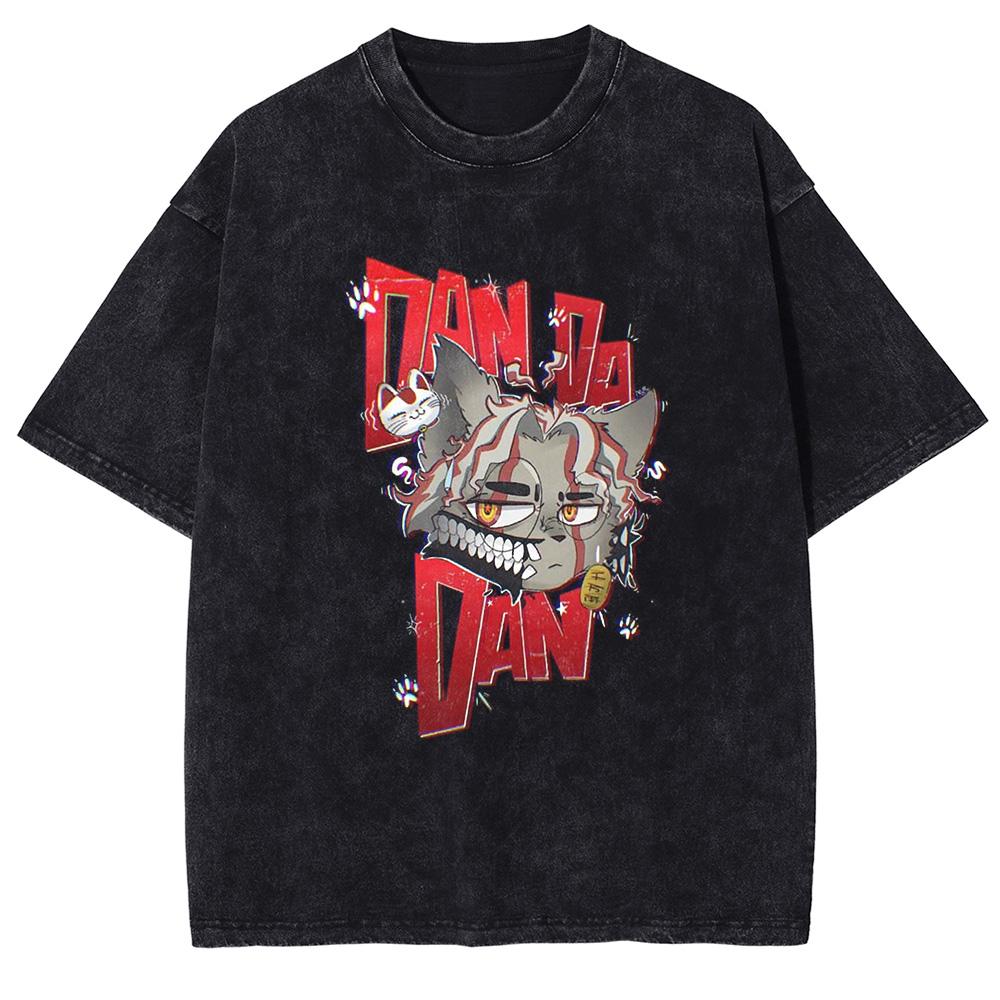 DAN DA DAN Anime T-shirt Vintage Gothic Washed Oversized T Shirt Summer Short Sleeve Pure Cotton Tee Tops Men Women Clothing