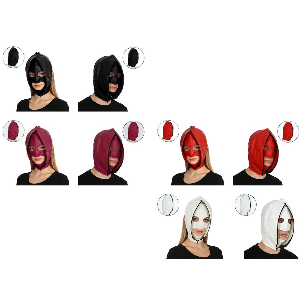 Δερμάτινη Μάσκα Πρόσωπου Πλήρης Κάλυψη Διπλής Στρώσης Κάλυμμα Κεφαλής με Φερμουάρ Κουκούλα Κορδόνι Ρυθμιζόμενη Δερμάτινες Μάσκες BDSM Αποκριάτικη Πάρτι Cosplay