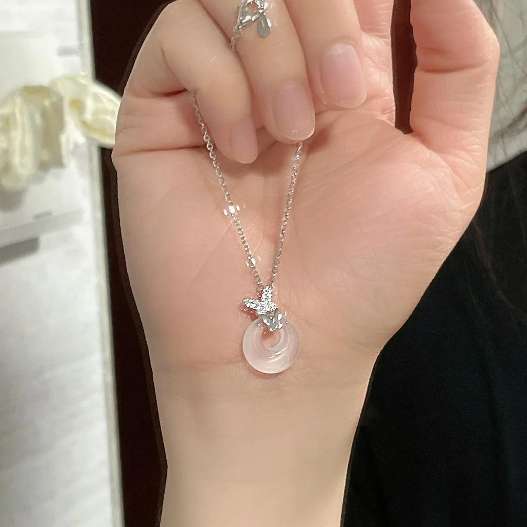 Tide Ping An Buckle Light Luxury Niche Necklace Temperament New Chinese Fashion Design Versatile Butterfly Love Necklace Female High Sense