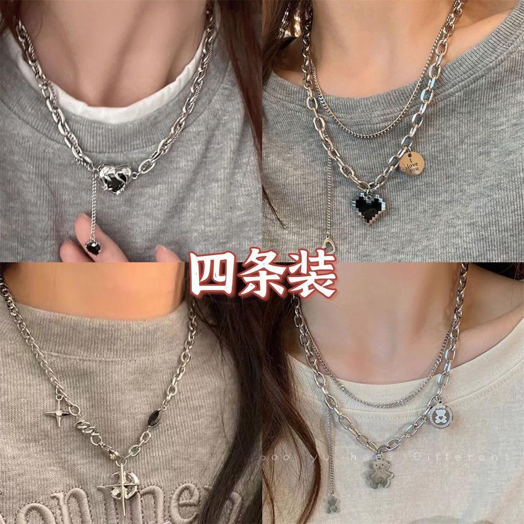 Lava Black Love Necklace Women's Sweet Cool Versatile Personality Sweater Chain High Design Personality Sweater Chain Men