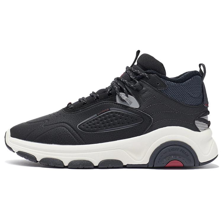 Li Ning Warm Front Trendy Leather Cushioning Slip Resistant Abrasion Resistant Thermal Rebound Mid top Running Shoes AGLR239-2