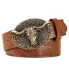 Floral Engraved Western Cowboy Waistband PU Leather Longhorn Bull Belt Waist Accessories