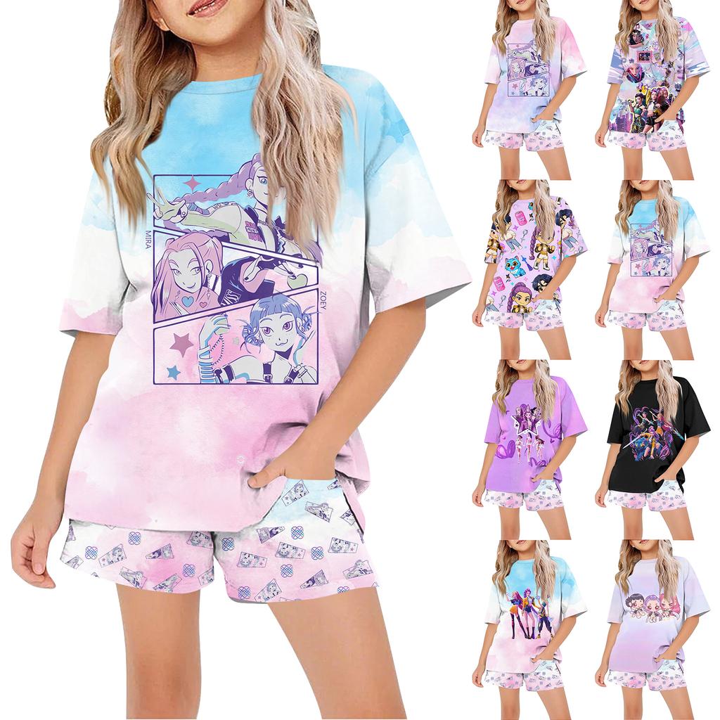 Παιδικό Καλοκαιρινό Αθλητικό T-Shirt Και Σορτς Σετ Φόρμας 2 Τεμαχίων Μπλουζάκια Κοντομάνικα Με Σχέδια Crop Tops Με Σετ Ρούχων