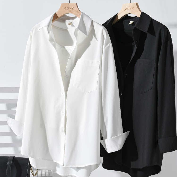 Women's White Non-Iron Wrinkle-Free Shirt Jacket - Plus Size, Loose Fit, Simple Commute Style for Spring and Autumn 2026