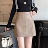 Women's High-Waisted Black PU Leather A-Line Mini Skirt - Slim Fit, Anti-Exposure, Perfect for Spring and Fall
