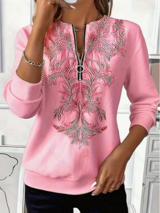 2025 Loose Fit Casual Outfit: Colorful Embroidered Zipper Top, Perfect for Walks and Dates